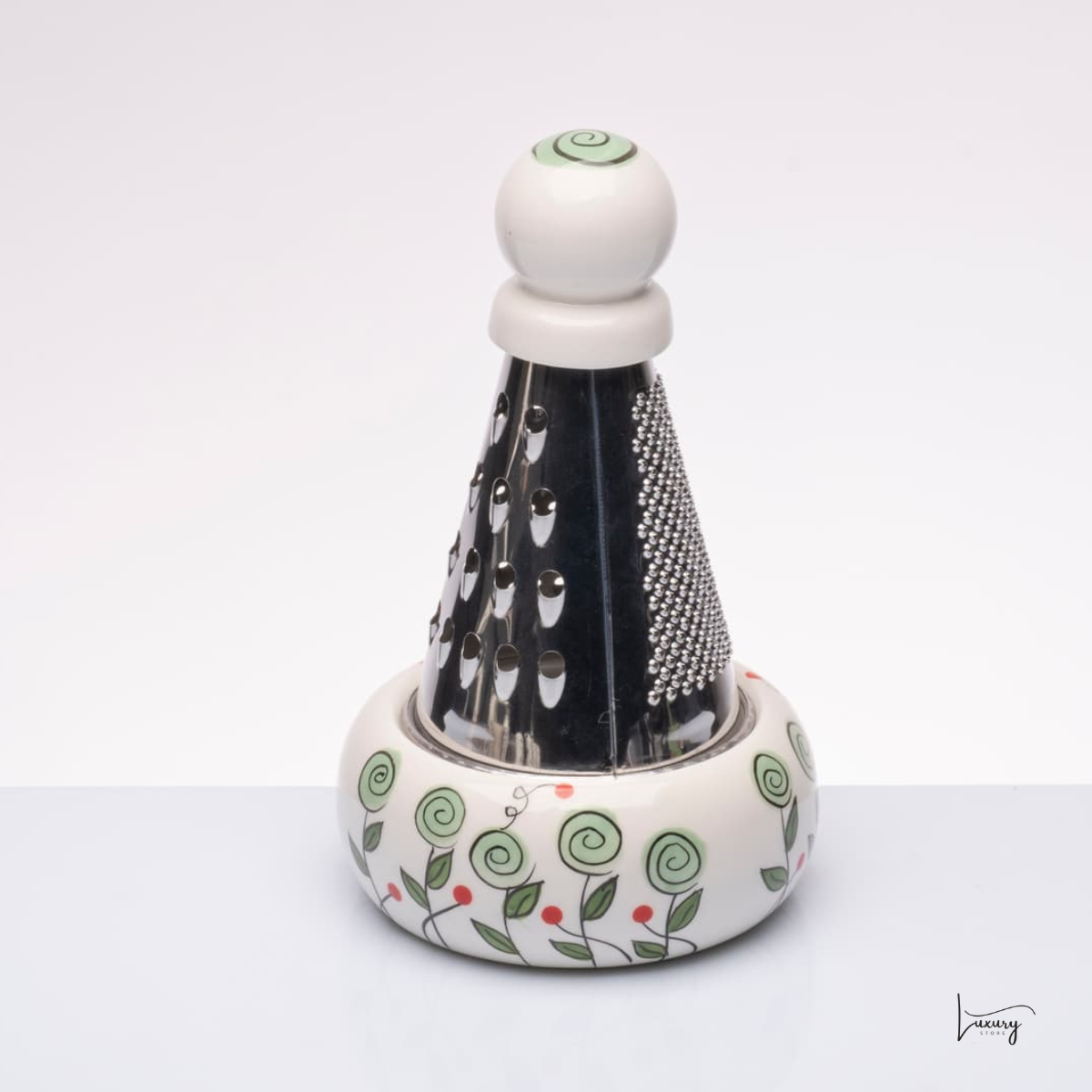 Grattugia in Acciaio con Base in Ceramica Dipinta a Mano Cuorematto
