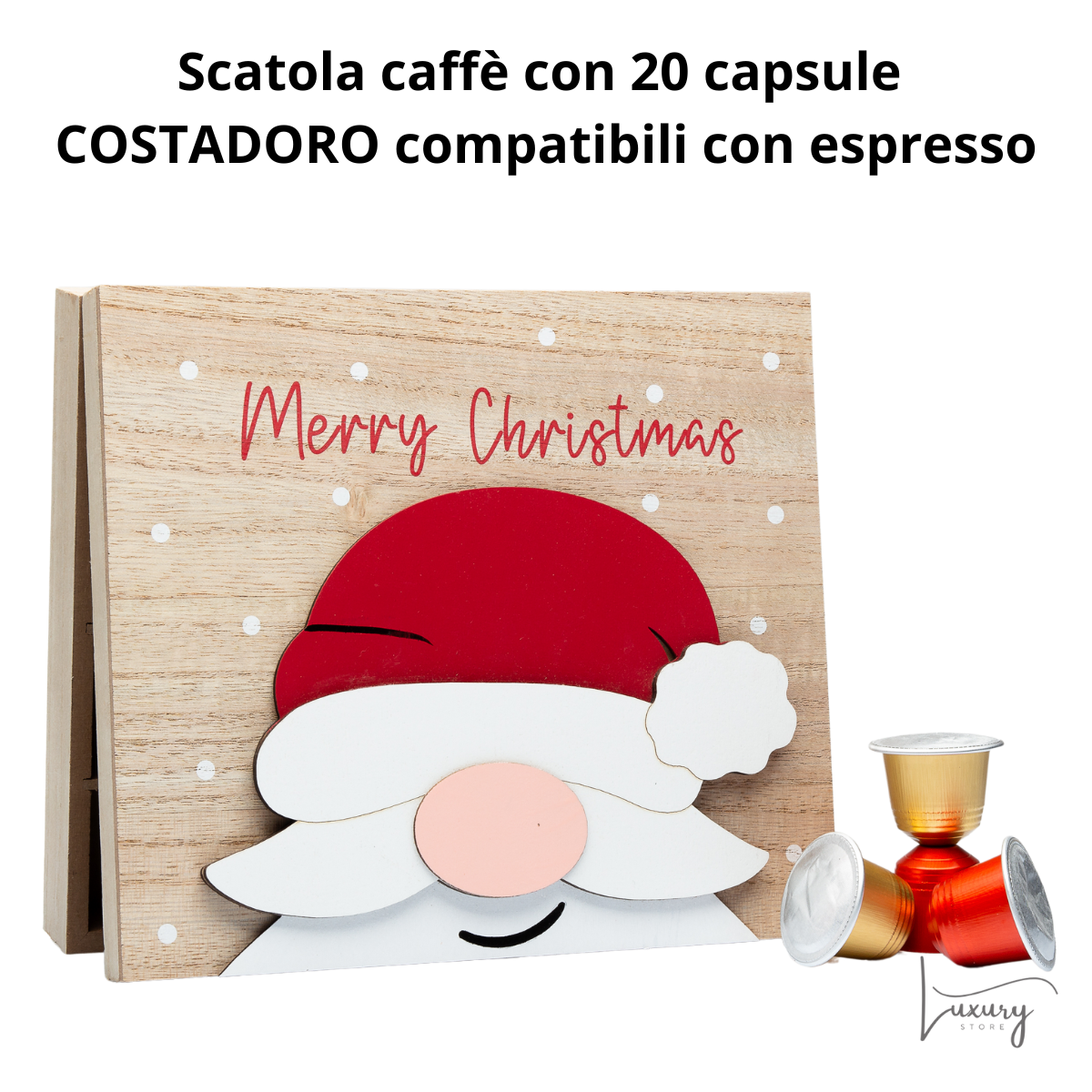 Cerchi un'idea regalo che sia utile, elegante e solidale? La scatola in legno porta capsule della linea Babbomatto di Cuore Matto è la soluzione perfetta! Realizzata in legno di alta qualità, questa scatola ti permette di conservare le tue capsule di caffè in modo ordinato e con stile. Con l'acquisto riceverai anche 20 capsule di caffè,COSTADORO compatibili con nespresso, pronte da gustare. Il vero valore? Supporti progetti di solidarietà, perché parte del ricavato sostiene cause benefiche.
