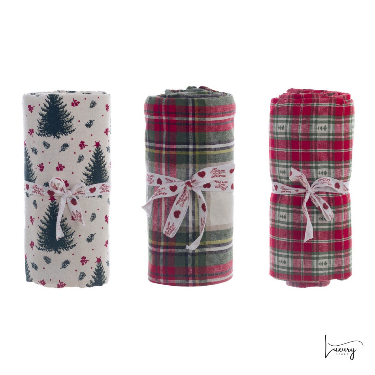 È disponibile in tre fantasie assortite, tutte ispirate all’atmosfera accogliente di un rifugio natalizio: tra casette innevate, fiocchi di neve e dettagli in stile country chic.