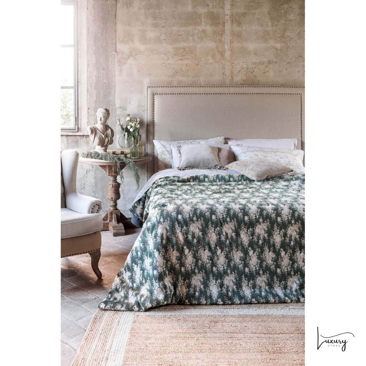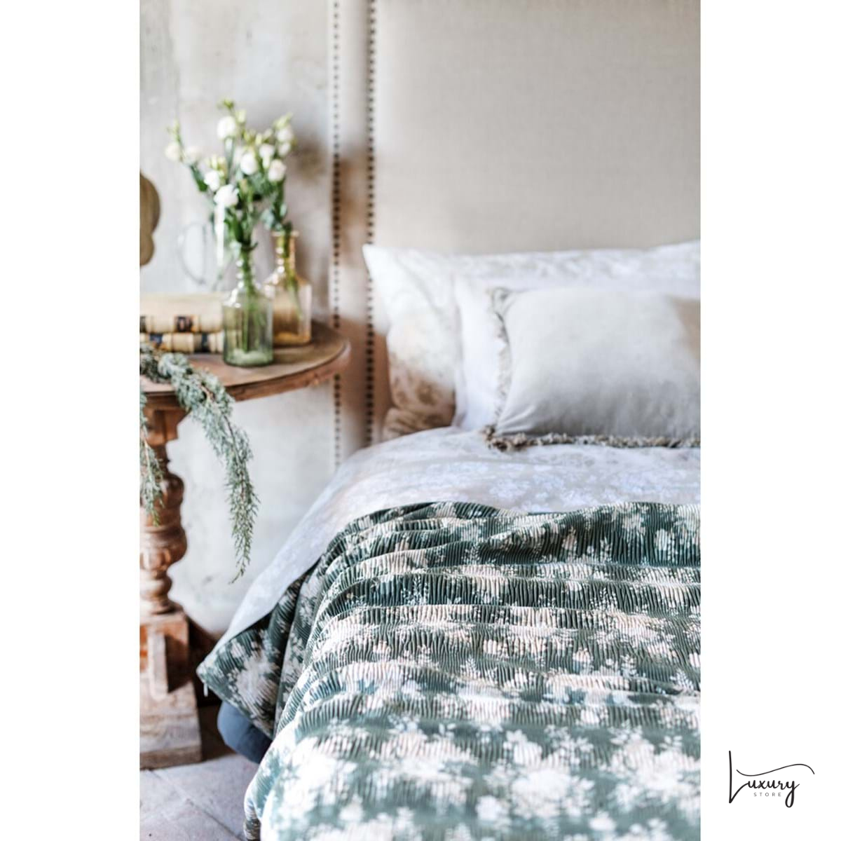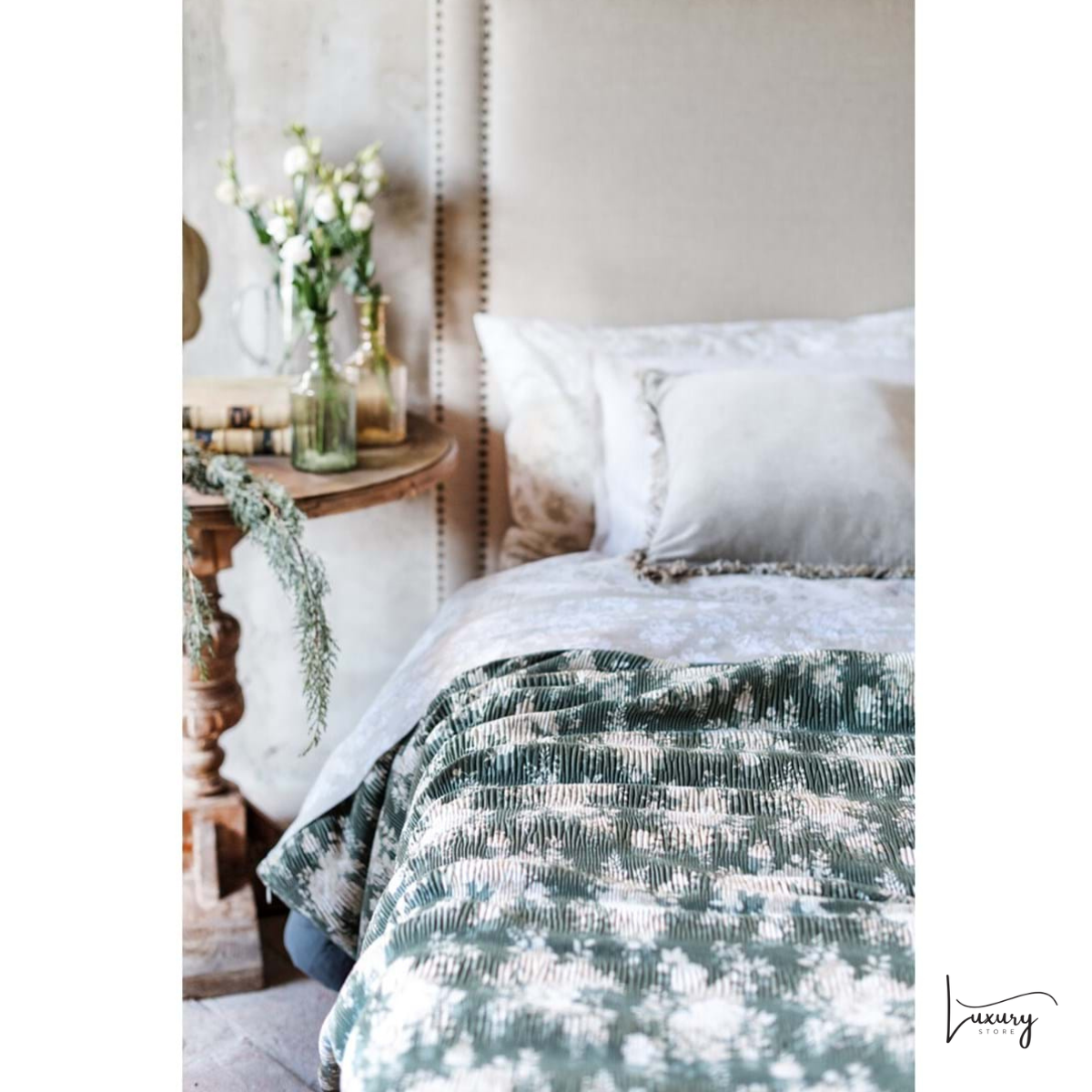 Realizzata in velluto ultra-soft e impreziosita da una lavorazione sartoriale curata nei minimi dettagli, questa trapunta matrimoniale è accompagnata da due copriguanciali coordinati, per un completo letto dallo stile romantico e sofisticato.