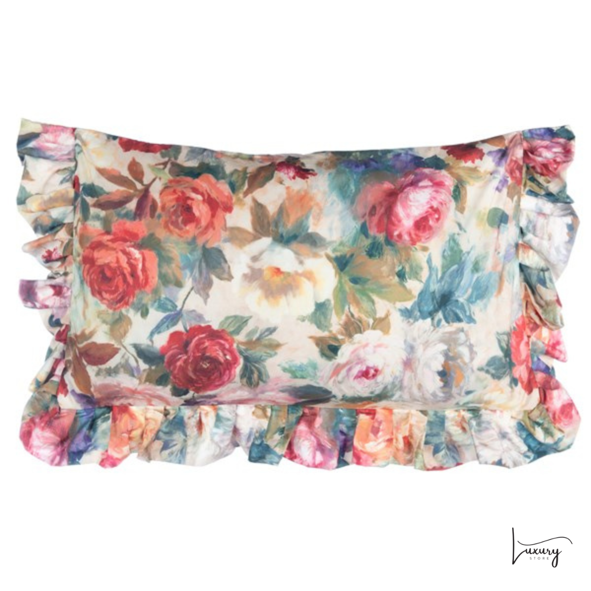 Il set è completo di due copriguanciali coordinati, con la stessa fantasia raffinata, per un effetto armonioso e curato nei minimi dettagli, firmato Blanc Mariclò.