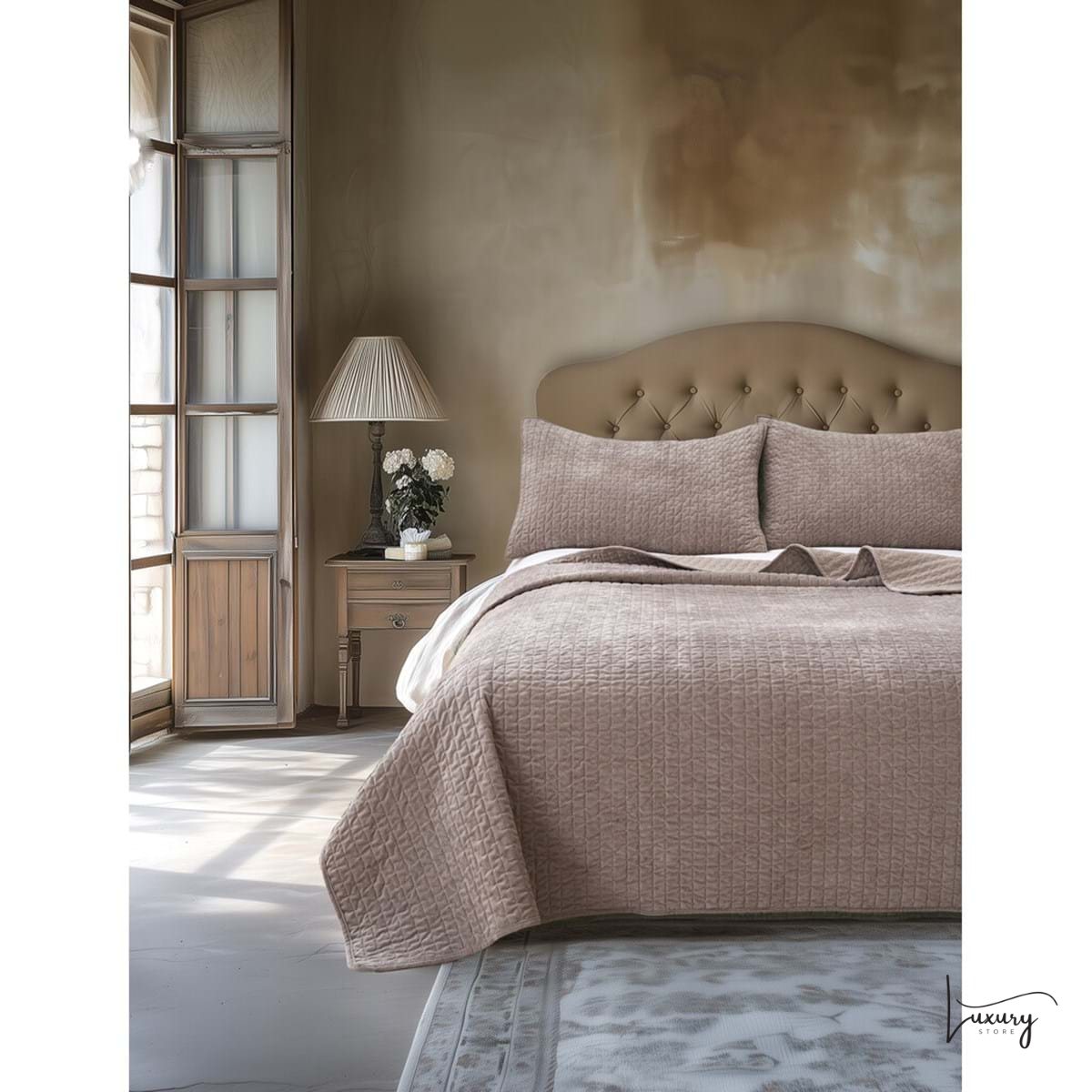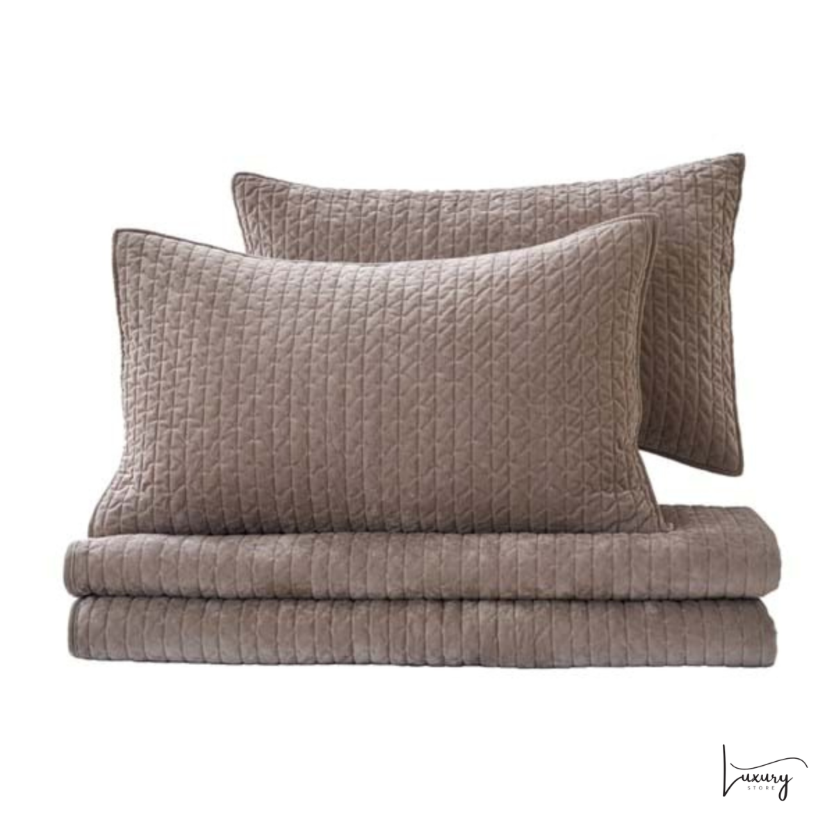 Insieme alla trapunta, il set include due copriguanciali 50x80 cm coordinati, per un completo letto armonioso, chic e curato nei minimi dettagli.