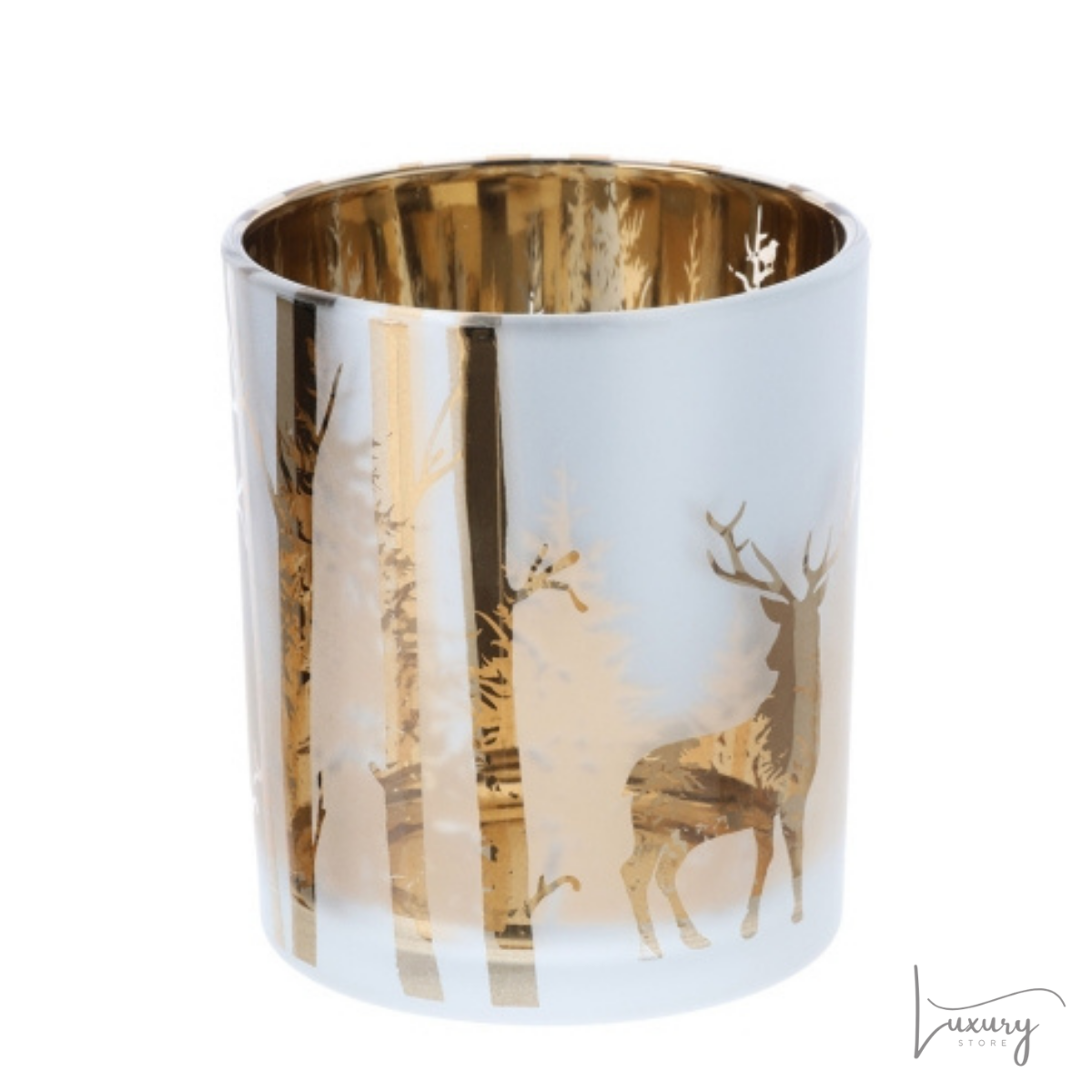 Porta Candela in Vetro Oro e Argento con Paesaggio di Natale – Hervit