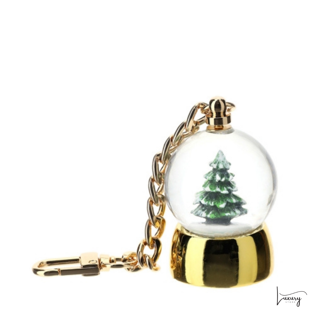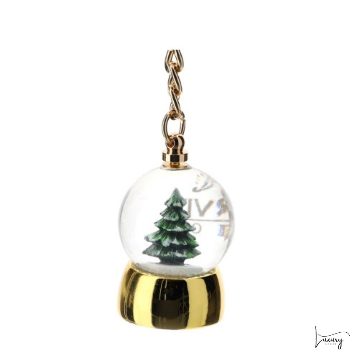 ✨ Porta sempre con te un pizzico di magia natalizia con il raffinato Portachiavi Palla Acqua/Neve Hervit in Resina con Base Nera e Oro.