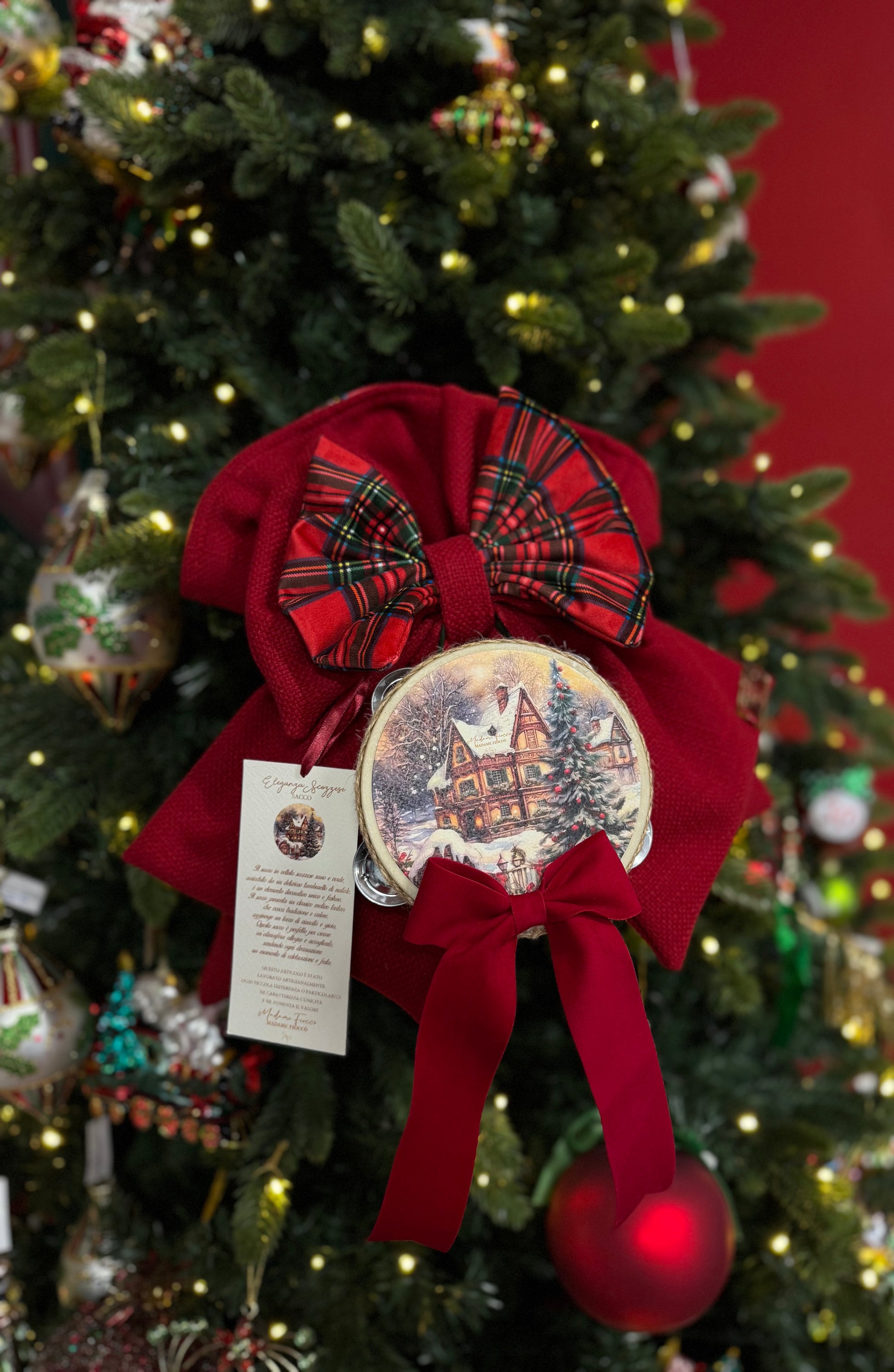 Madame Fiocco – Sacco delle Dolcezze Eleganza Scozzese con Tamburello | Decorazione Natalizia Artigianale Made in Italy