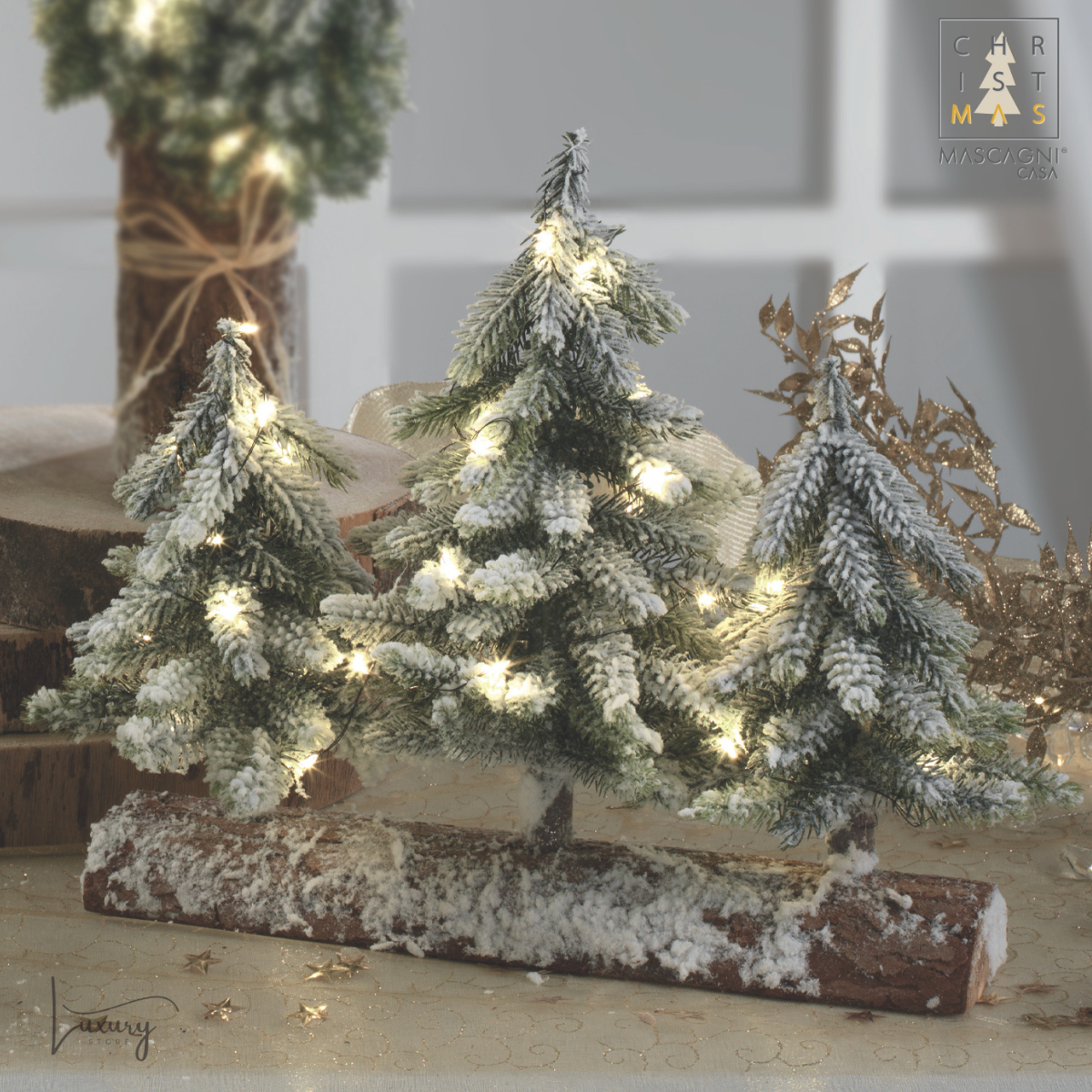 Mascagni Composizione di 3 Pini Innevati su tronchetto con 30 luci