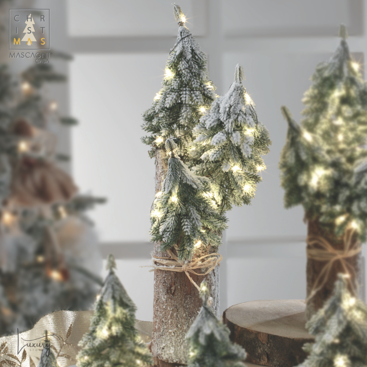 Mascagni Composizione di 3 Pini Innevati su tronchetto con 25 luci