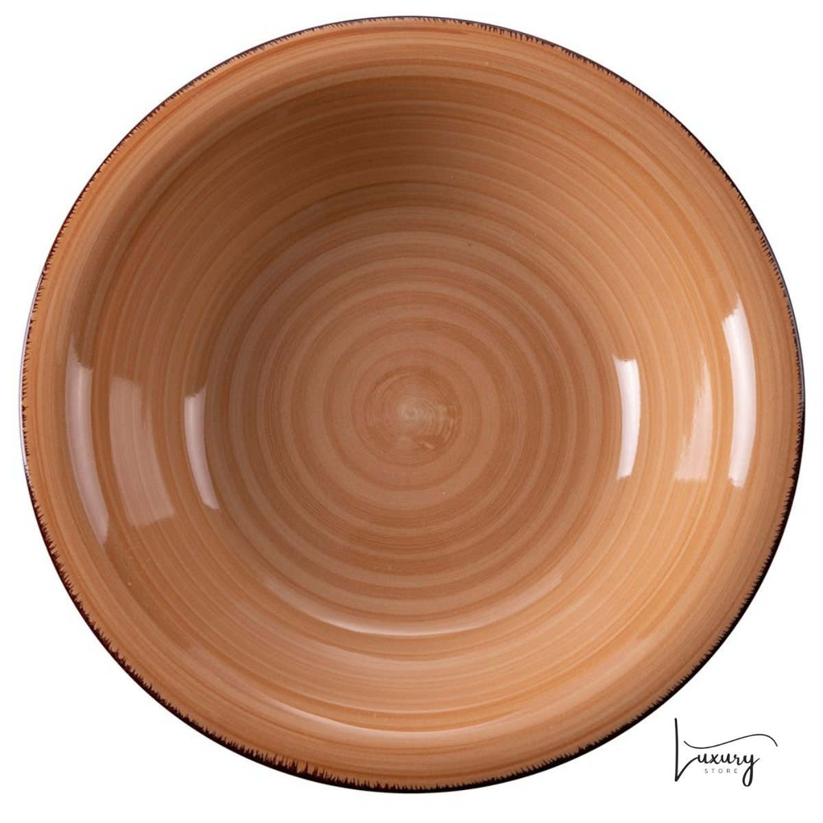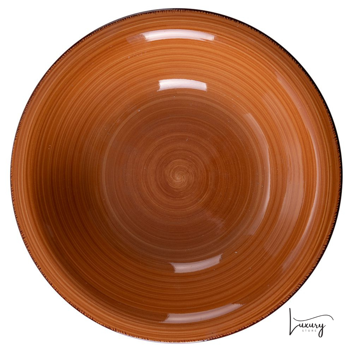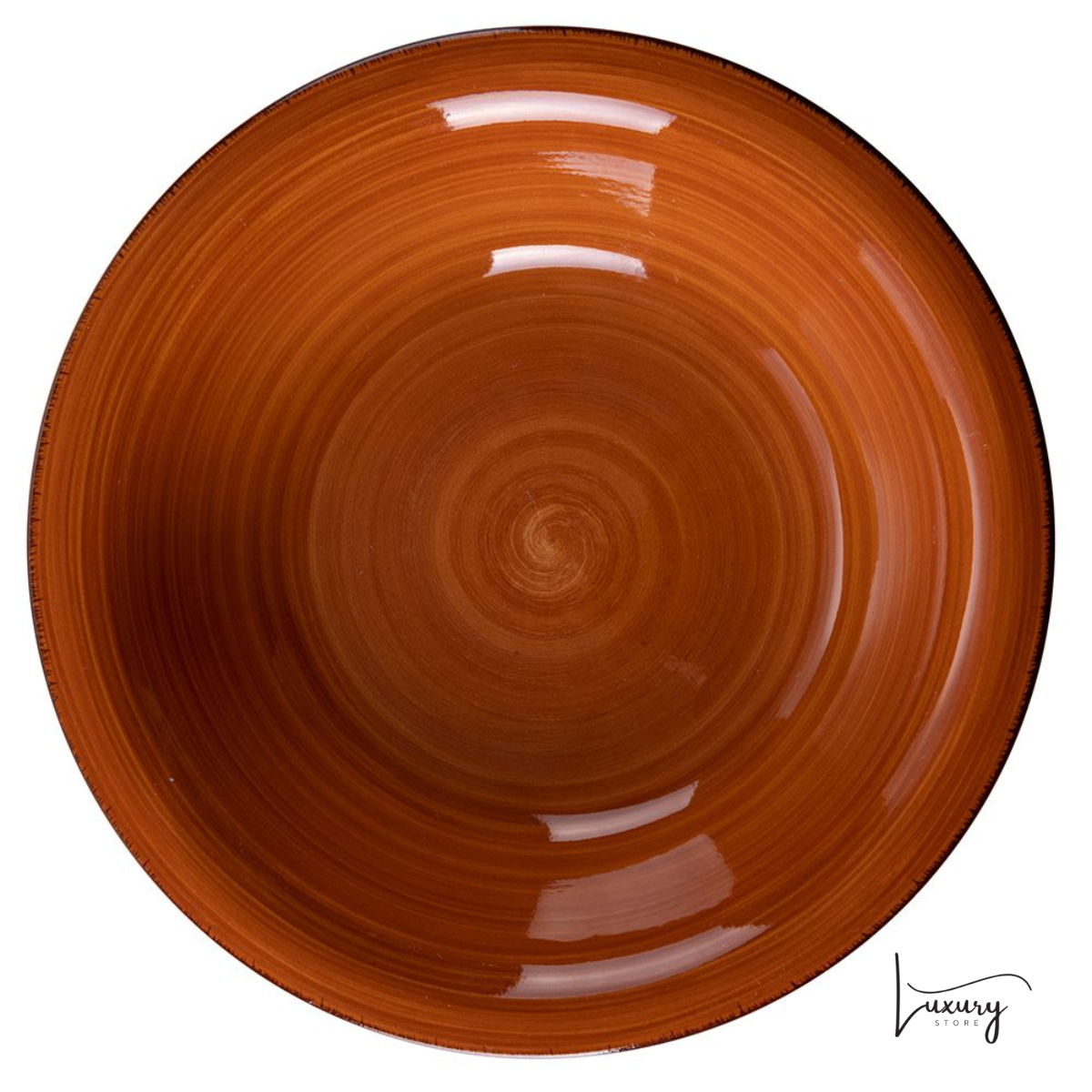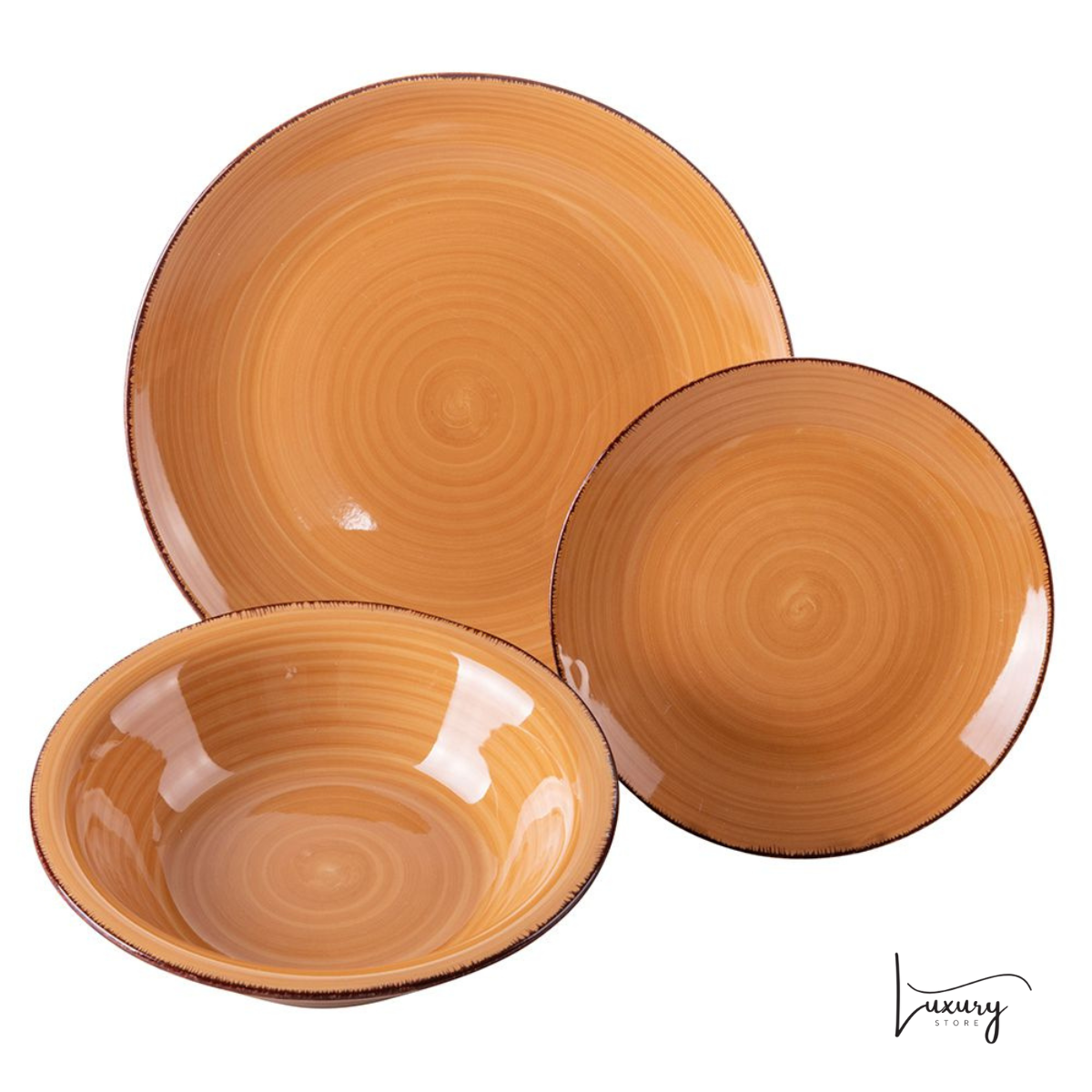 Ogni set comprende 6 piatti piani, 6 piatti fondi e 6 piatti frutta, ognuno in una diversa sfumatura di color cioccolato 🍫, per un effetto cromatico elegante e avvolgente. Perfetti per sorprendere i tuoi ospiti e rendere unica la tua mise en place.
