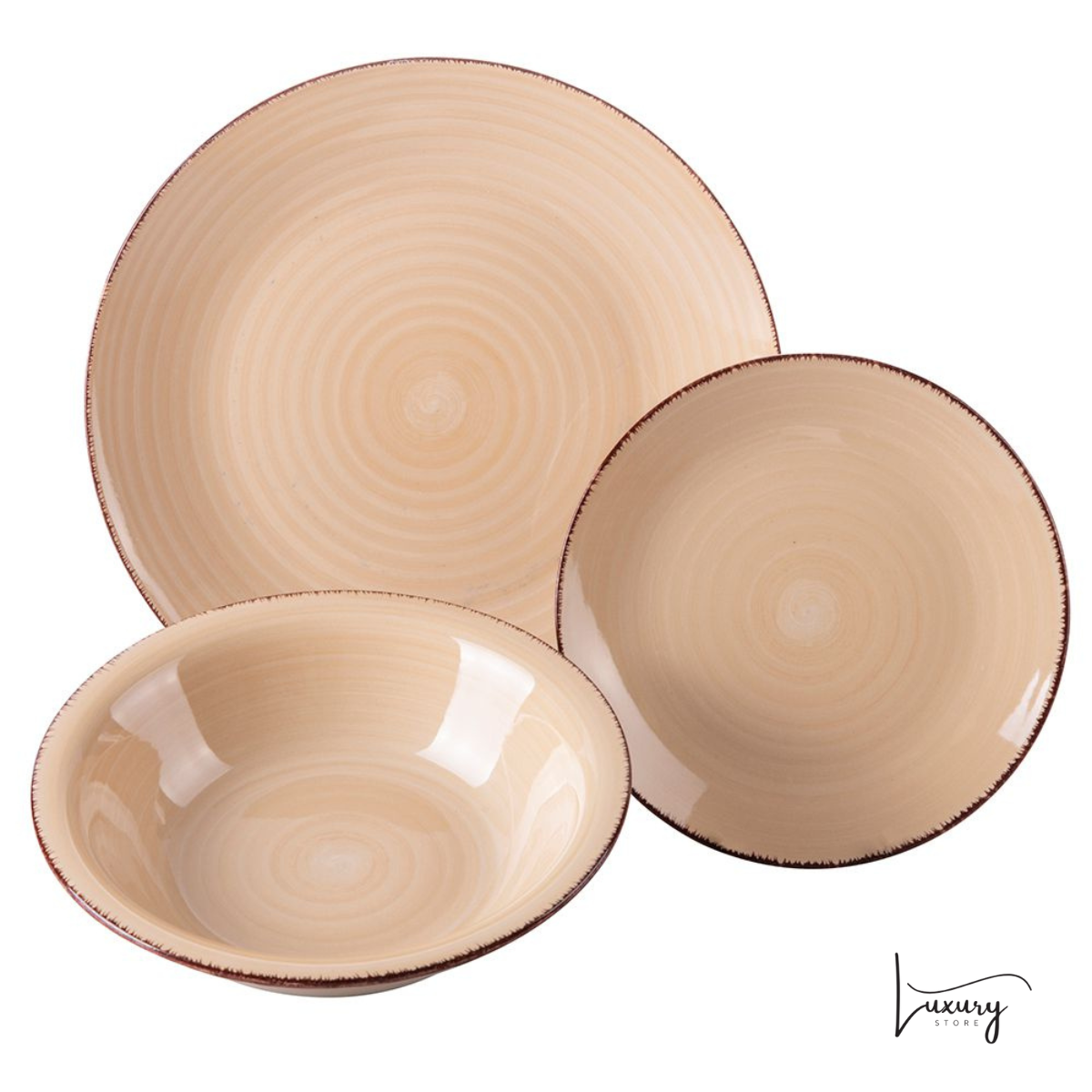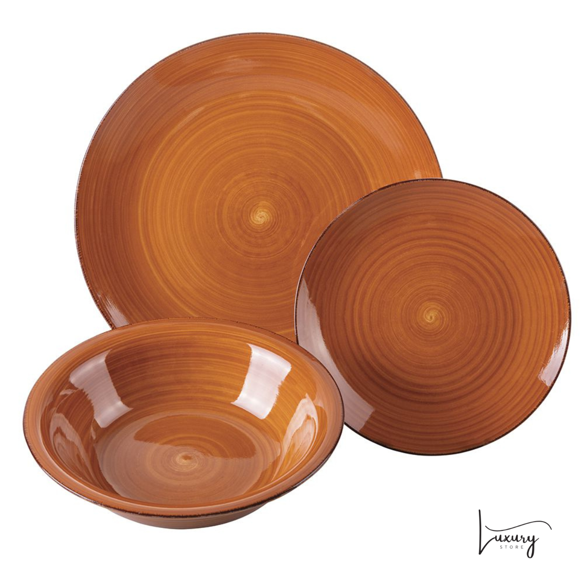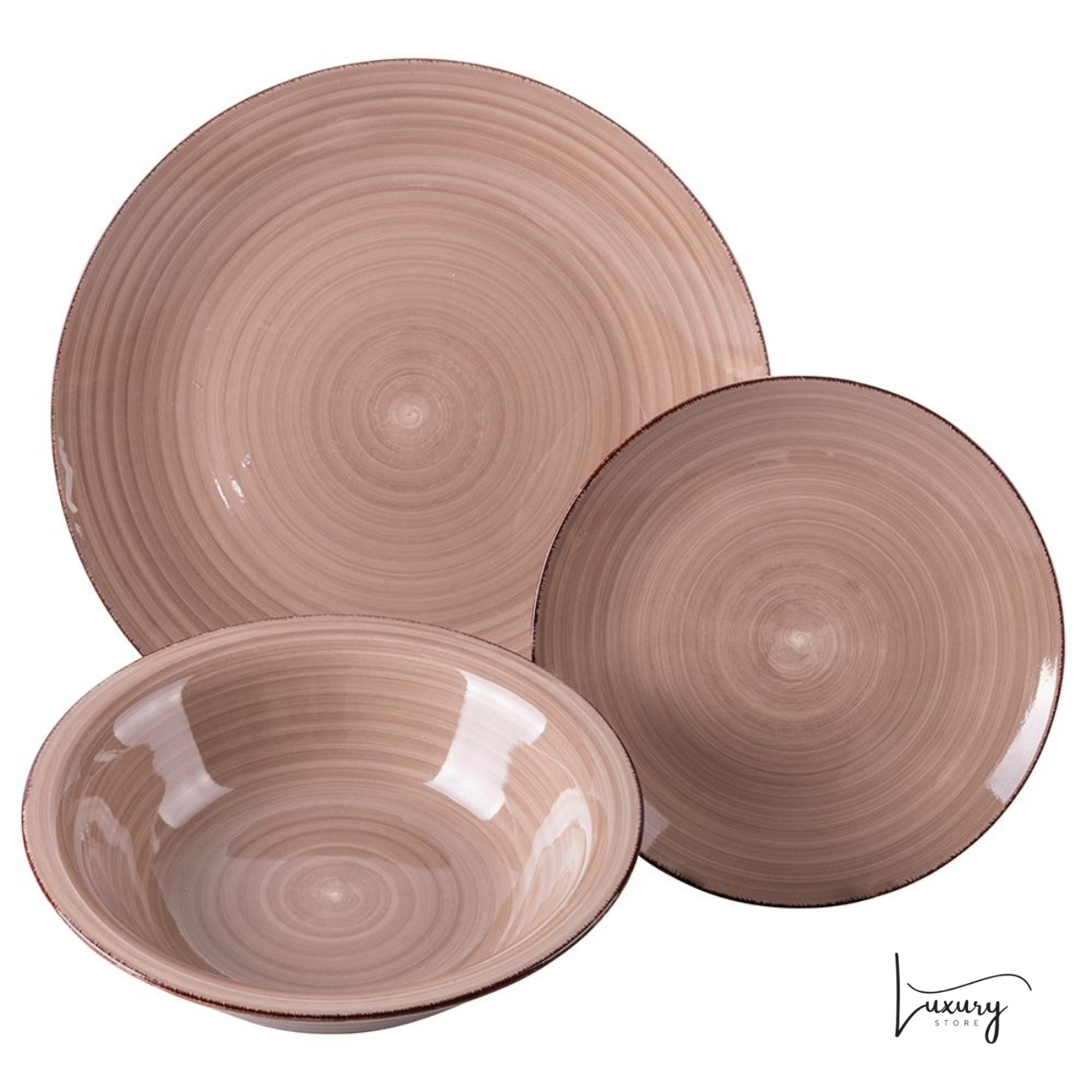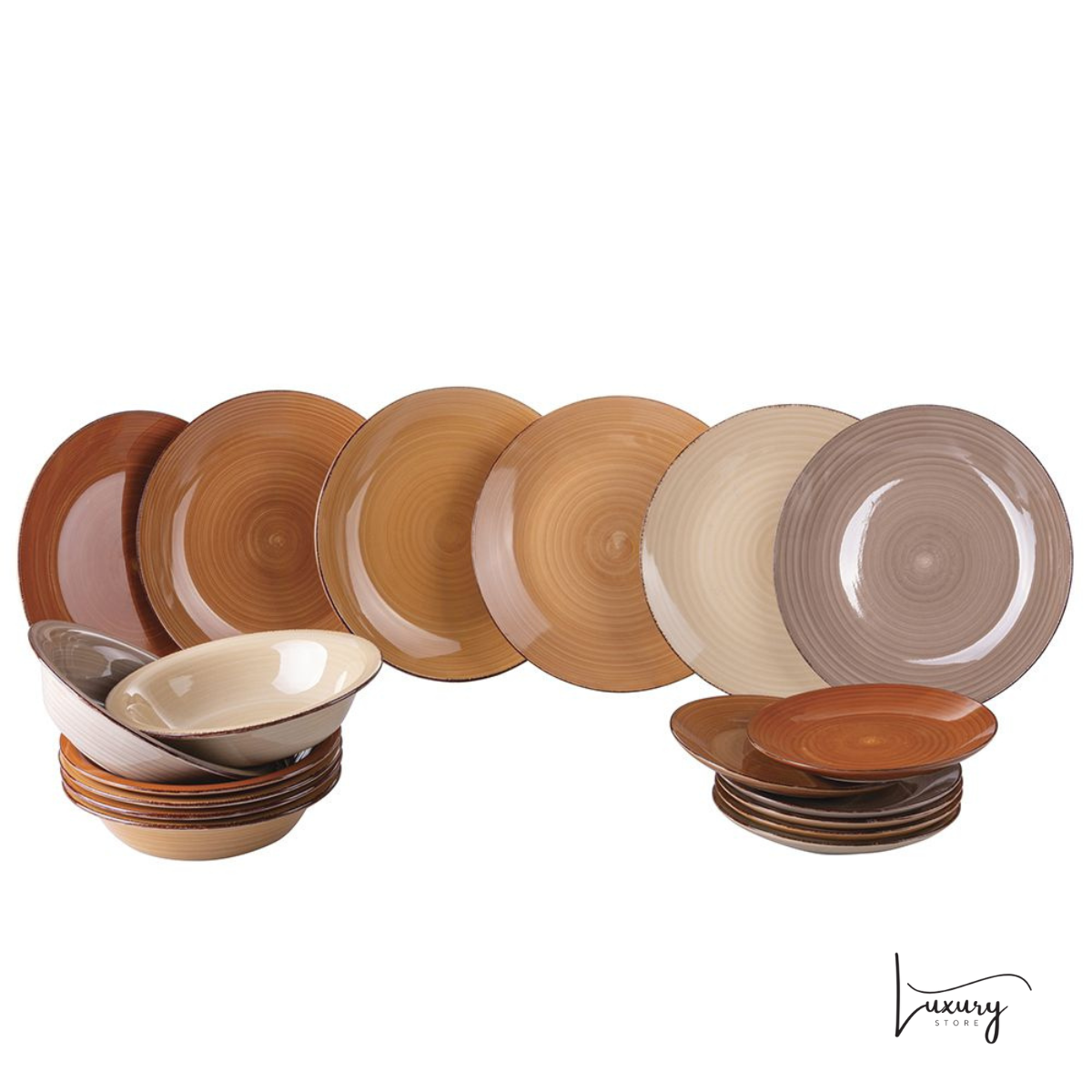 🍫 Servizio piatti 18 pezzi Baita Chocolate – Gres in calde sfumature cioccolato