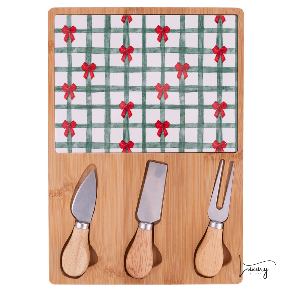 🎄 Tagliere con Coltelli da Formaggio Villa d'Este Tagliere con Coltelli da Formaggio Xmas – Collezione Natalizia